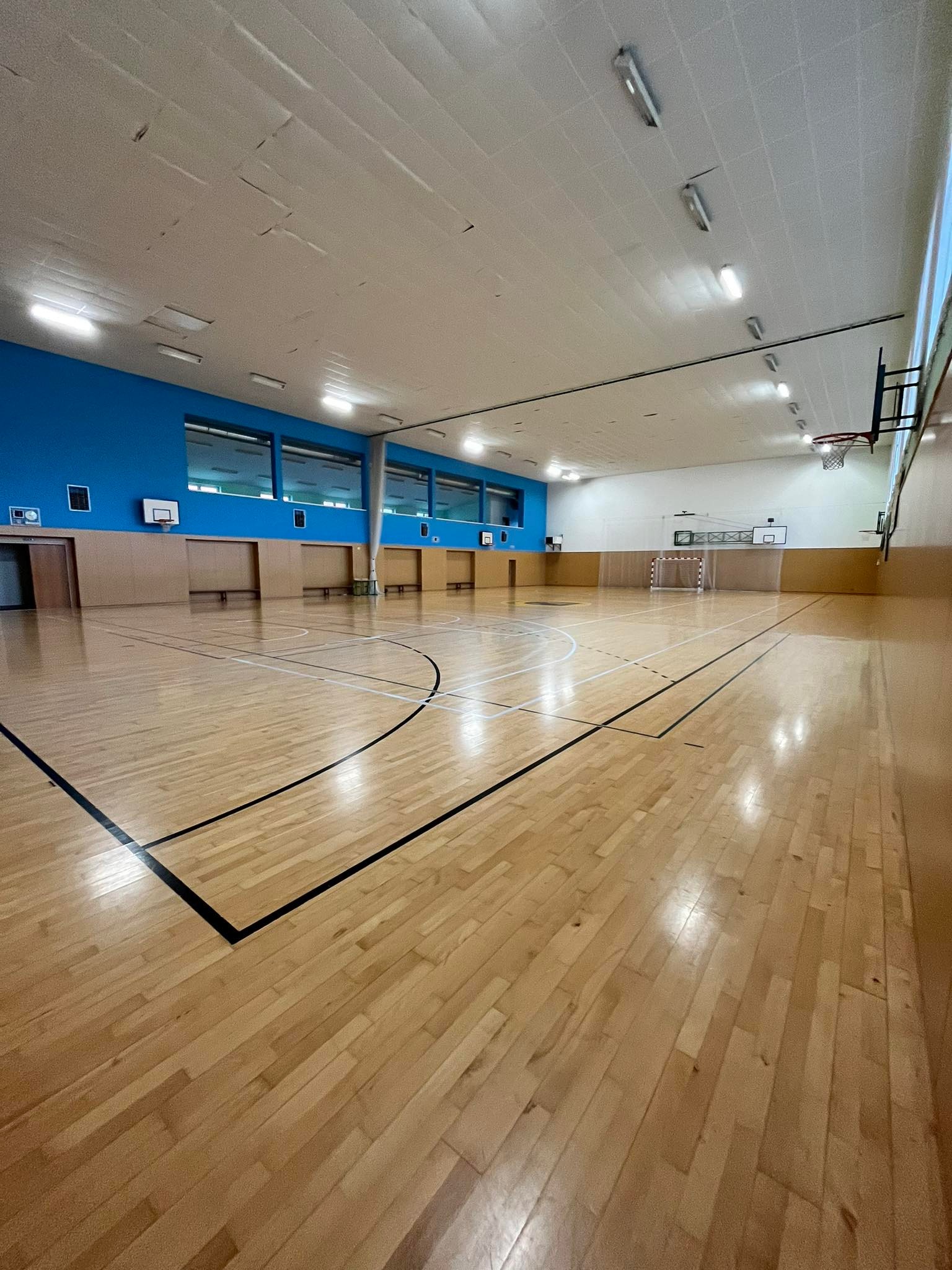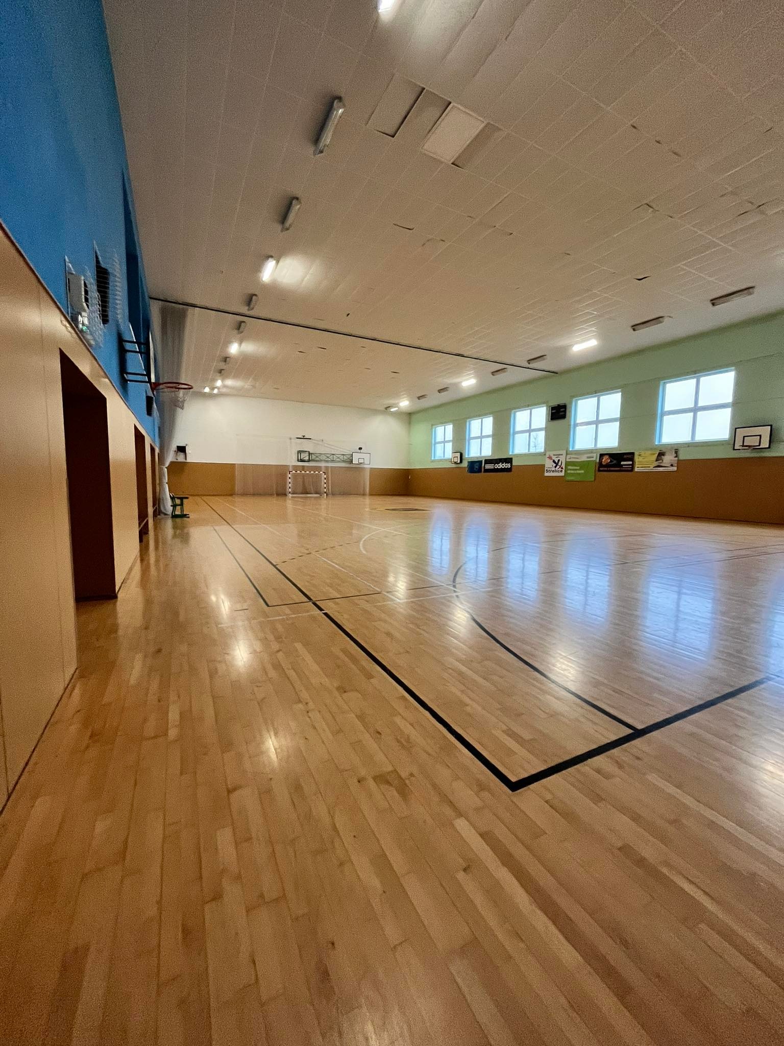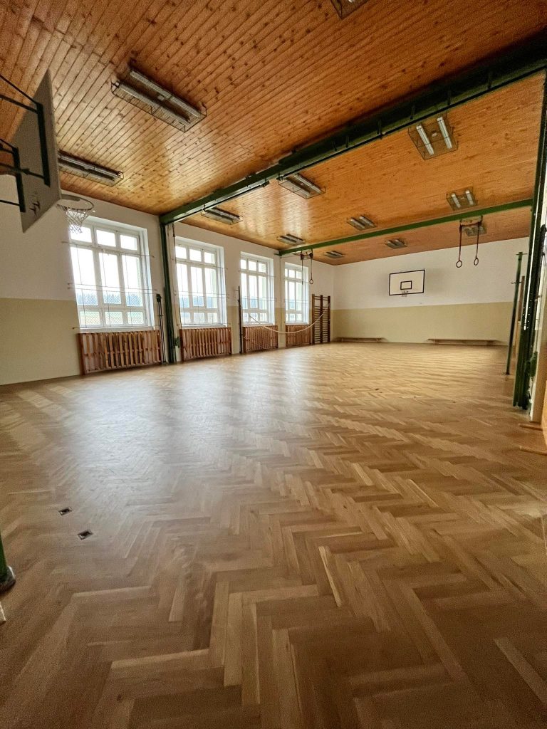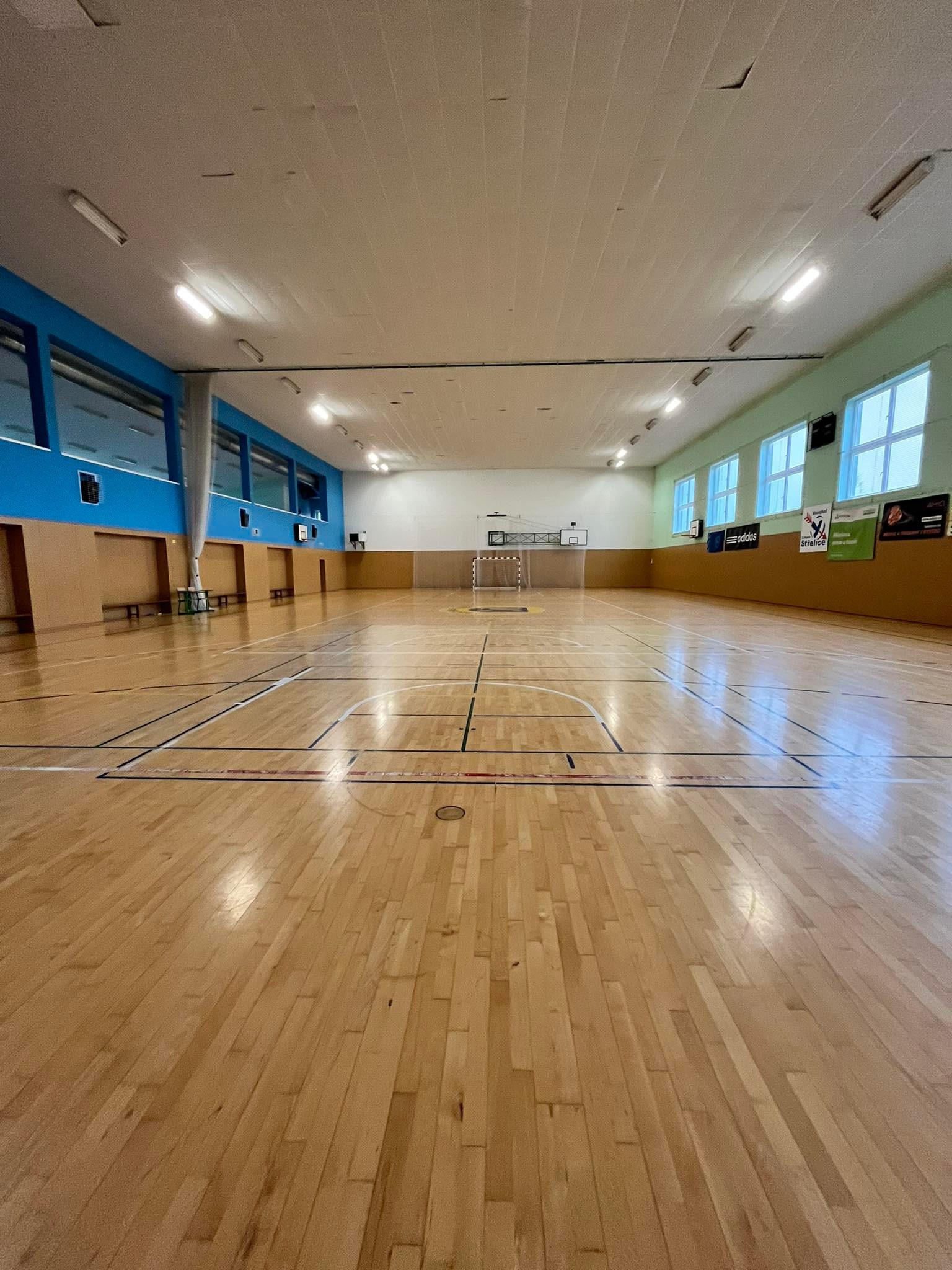 Velká tělocvična včetně zázemí jako jsou šatny, sprchy, nářaďovna byla postavena v roce 2007. Celkové vnitřní rozměry haly jsou 34 m x 17 m. Strop haly je ve výšce 8 m. Jsou zde vyznačeny lajny na tyto sporty – házená, volejbal (jeden centrální kurt, případně dva kurty napříč), basketbal, tenis, florbal. Podlaha je dřevěná plovoucí.